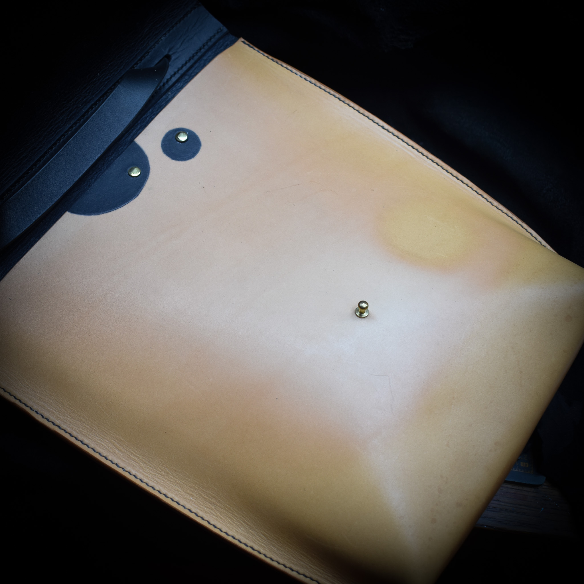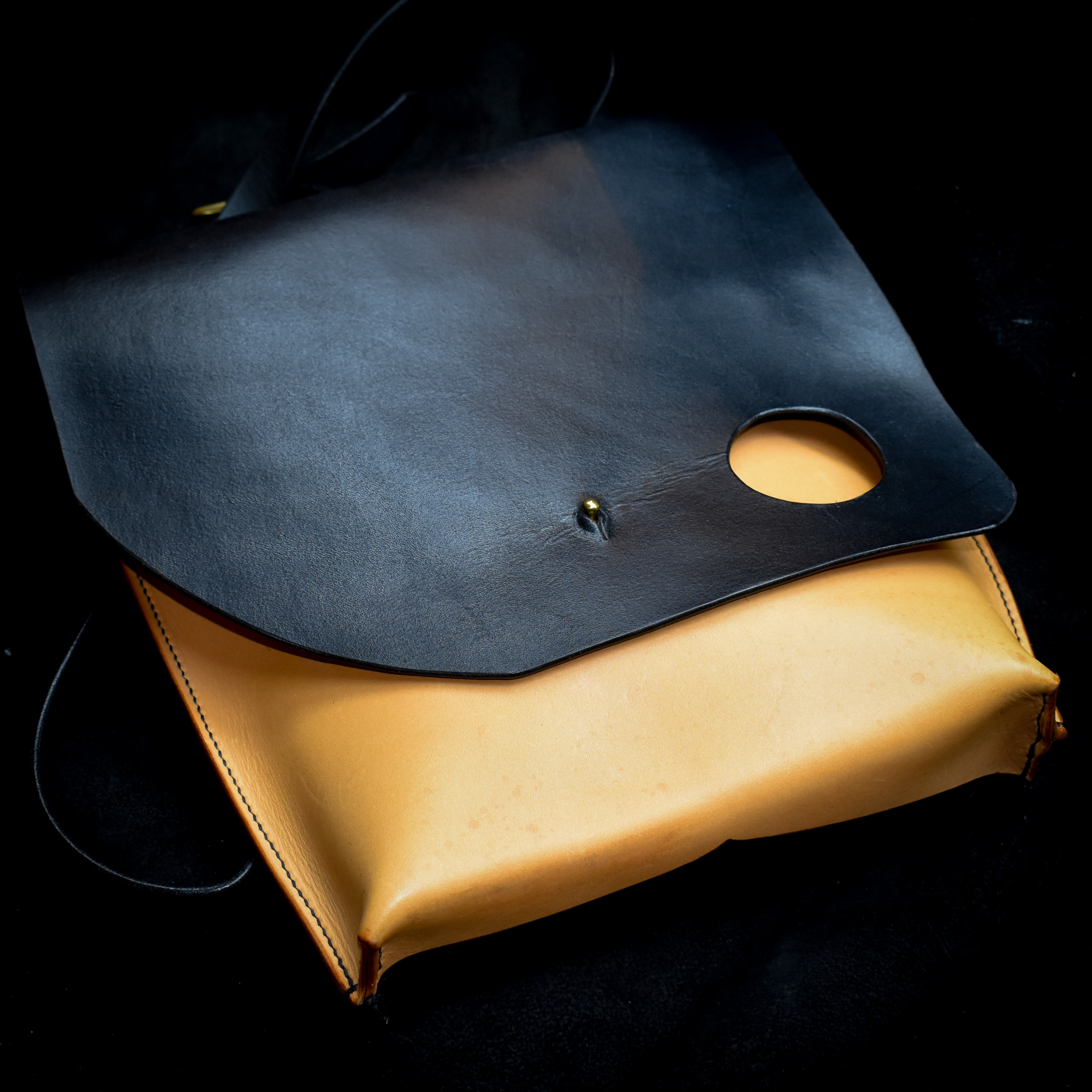 Handsydd och handfärgad axelväska i vegetabiliskt garvat läder från Tärnsjö garveri, tillverkat av mig, Fru Läder i Örebro, Sverige.