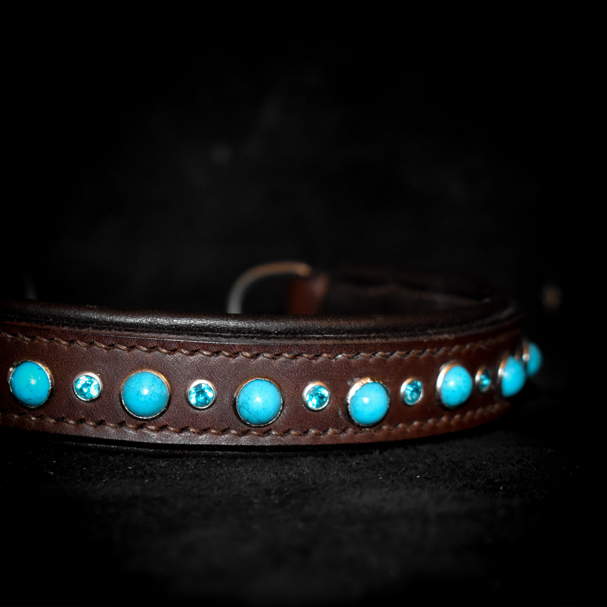 Handsytt hundhalsband i vegetabiliskt garvat läder från Tärnsjö garveri, med solida beslag i mässing, tillverkat av mig, Fru Läder i Örebro, Sverige.